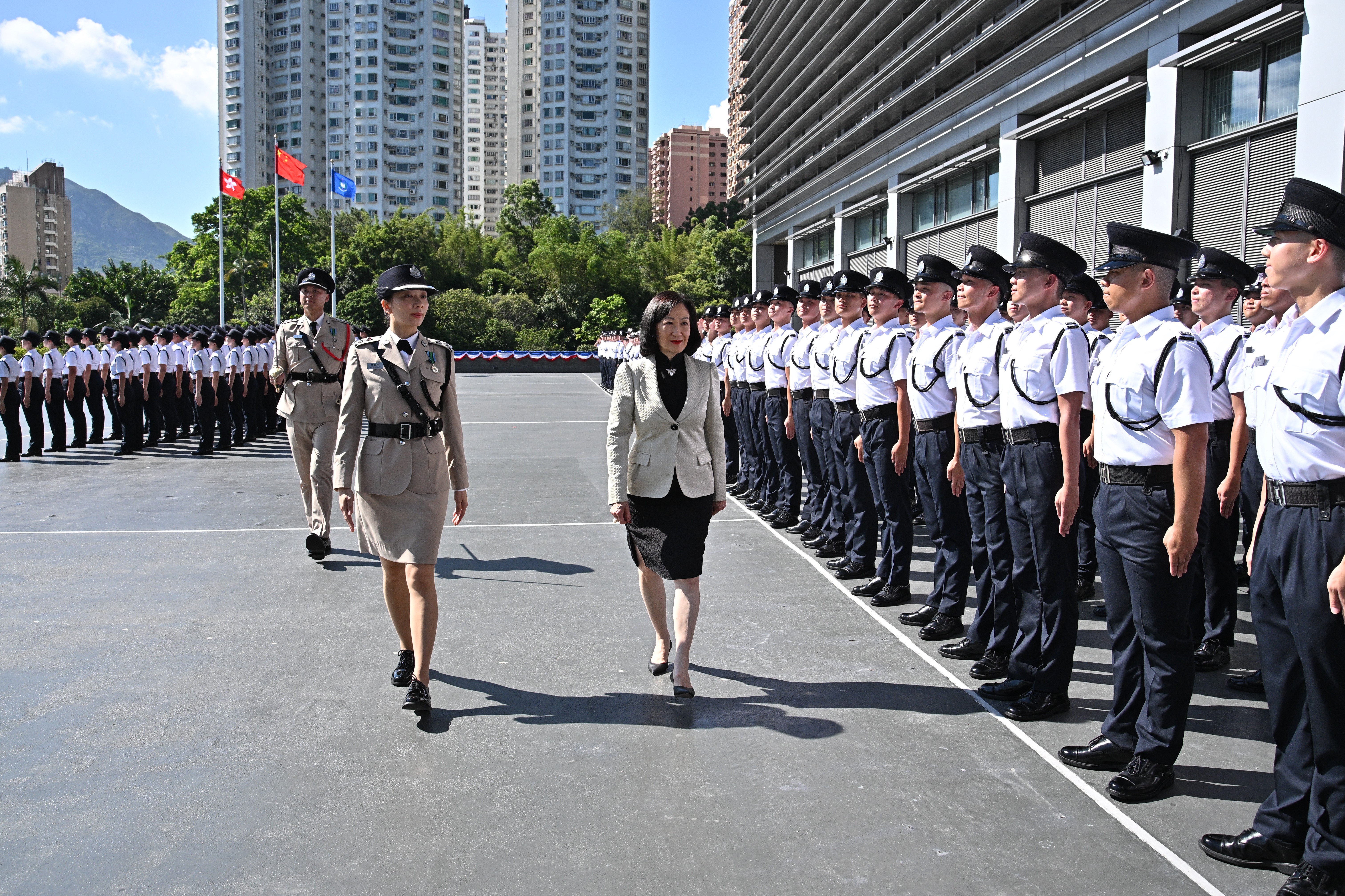 行政會議非官守議員召集人葉劉淑儀今日(九月十一日)在入境事務學院學員結業會操中檢閱結業學員。