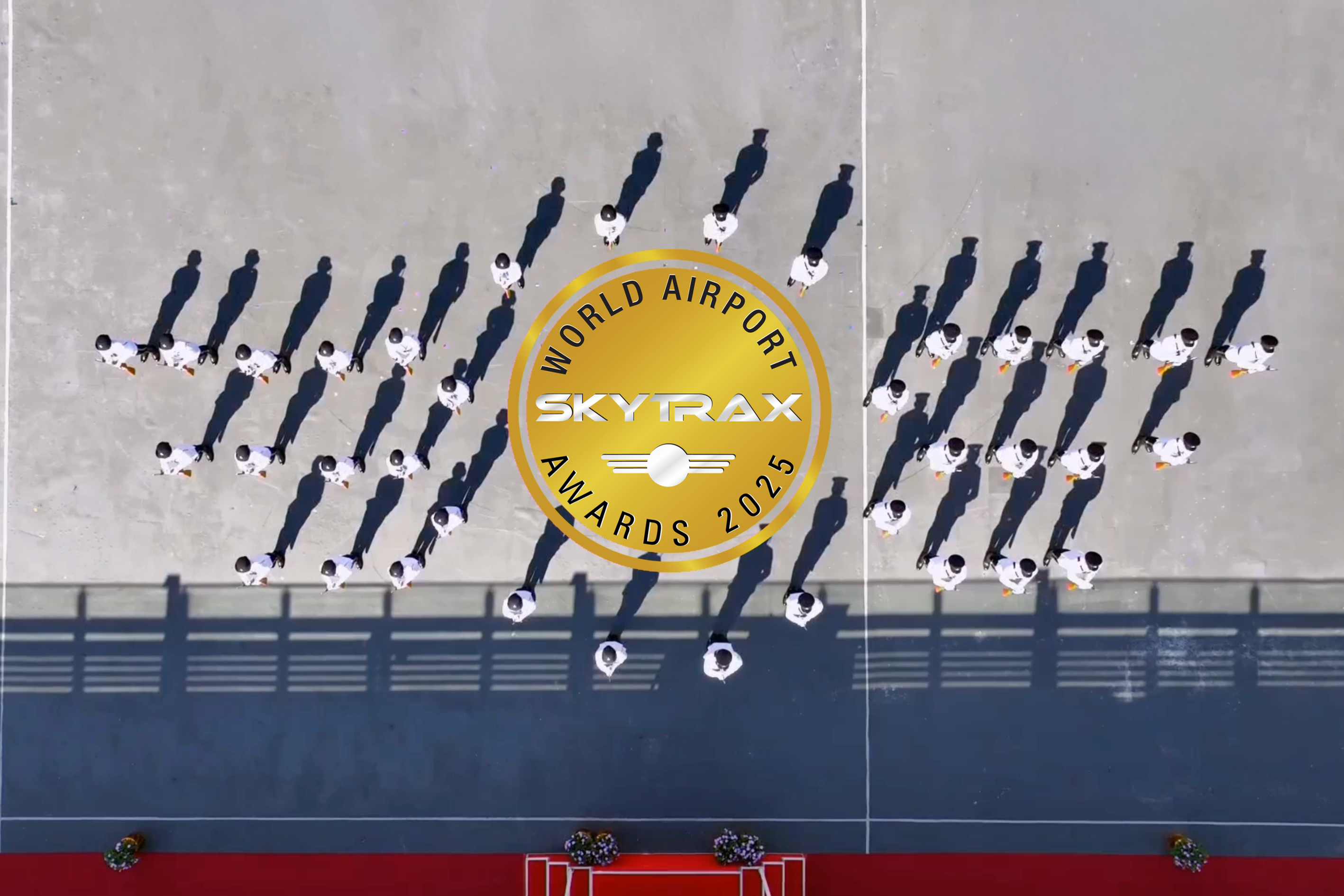 入境事務學院學員結業會操今日(九月十一日)舉行。圖示儀仗隊以花式步操拼砌出Skytrax獎項標誌,慶祝入境處榮獲Skytrax 2025年全球最佳機場出入境服務大獎。