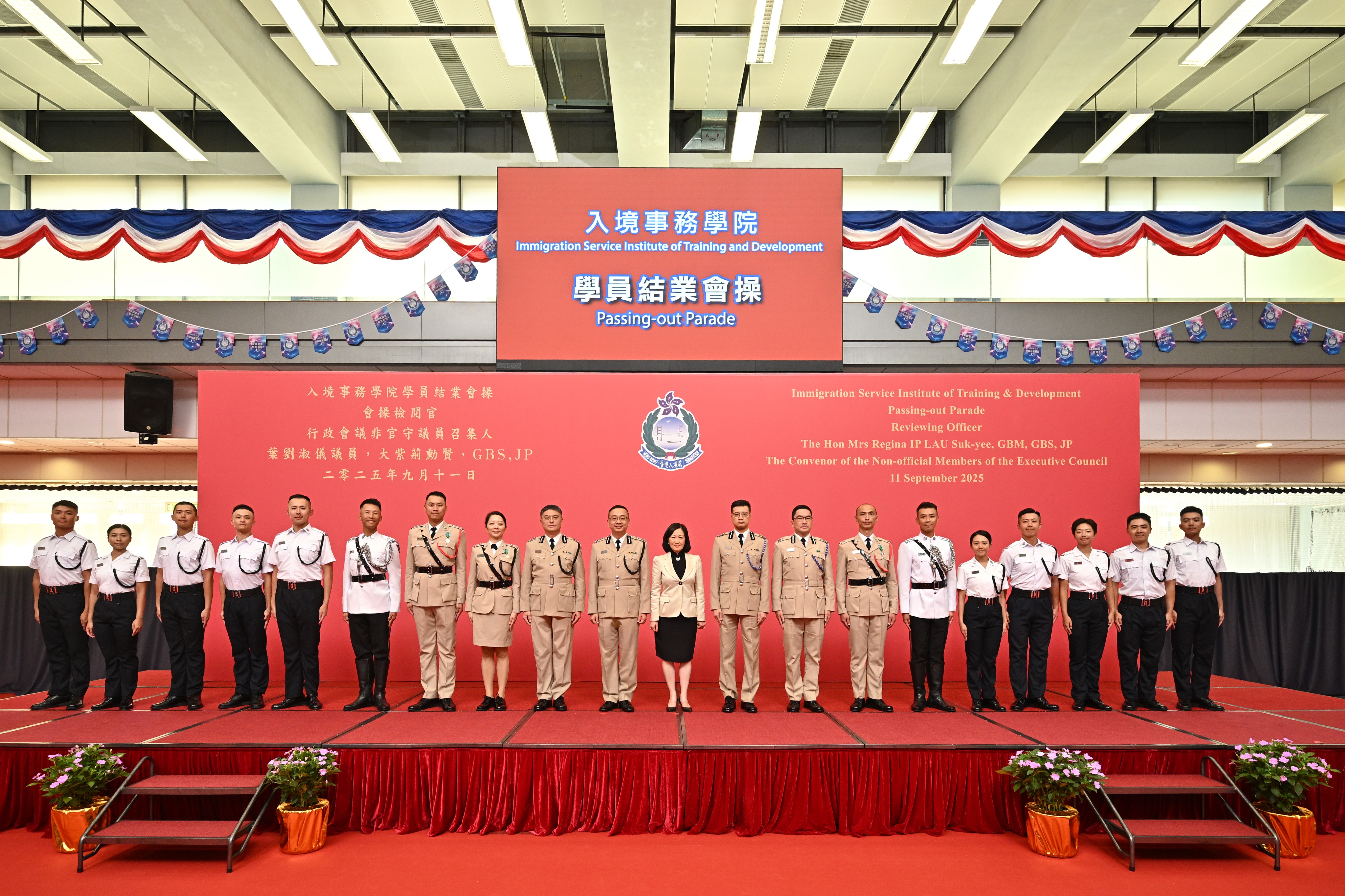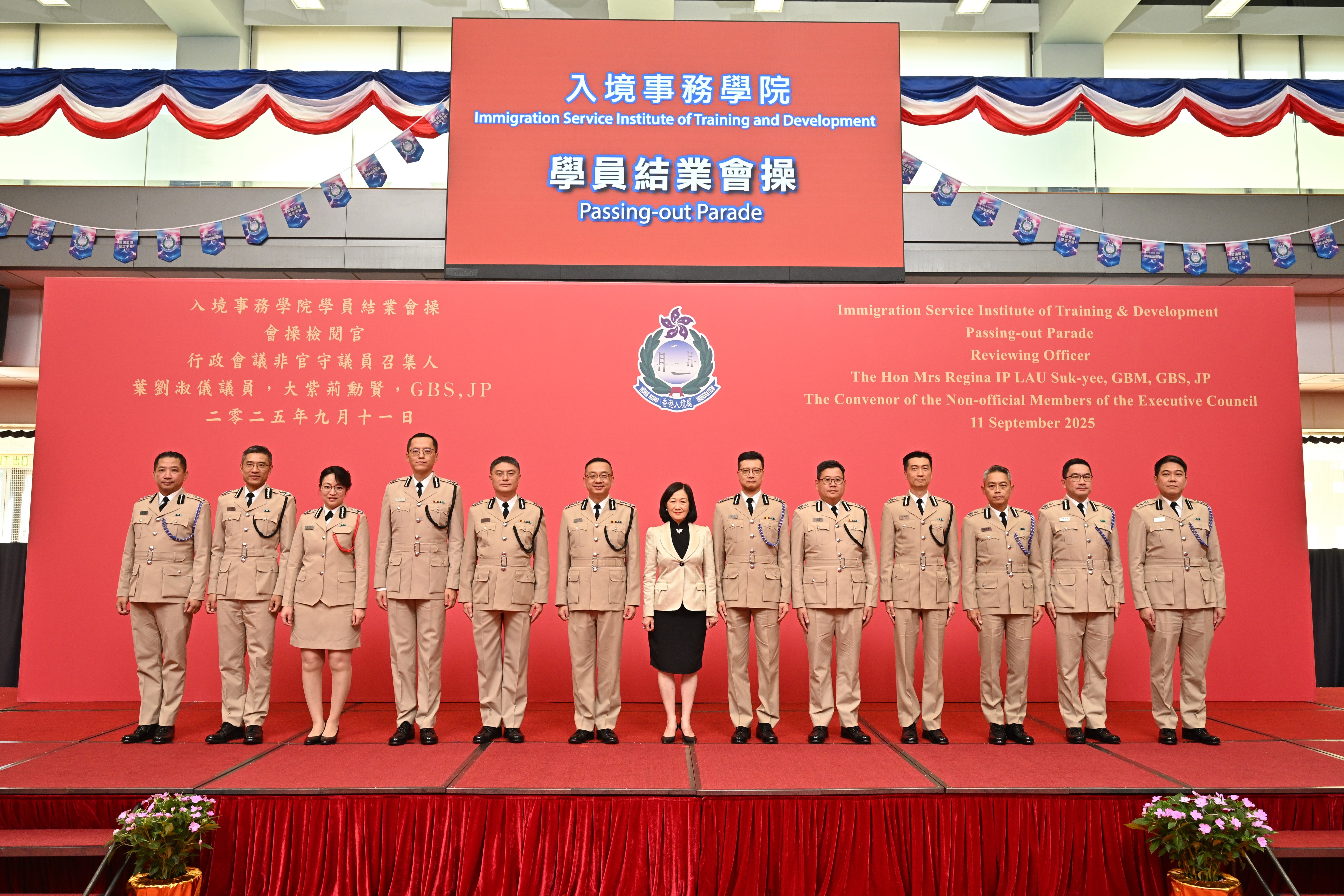 行政會議非官守議員召集人葉劉淑儀今日(九月十一日)主持入境事務學院學員結業會操,檢閱211名結業學員,包括63名入境事務主任及148名入境事務助理員。