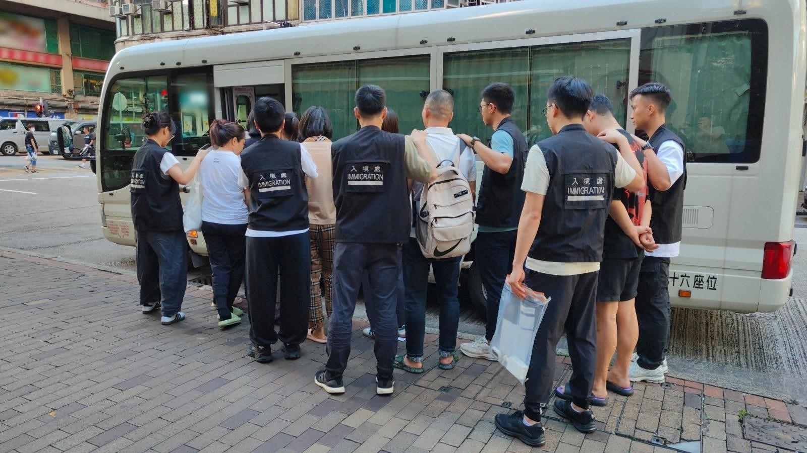 入境事務處於十月二日至昨日(十月九日)一連八日在全港多區展開反非法勞工行動。圖示懷疑非法勞工在行動中被捕。