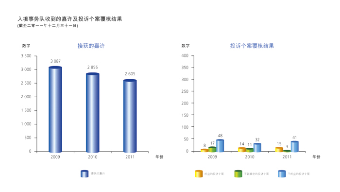 投诉检讨工作小组对二零零九年至二零一一年的投诉个案的覆核结果