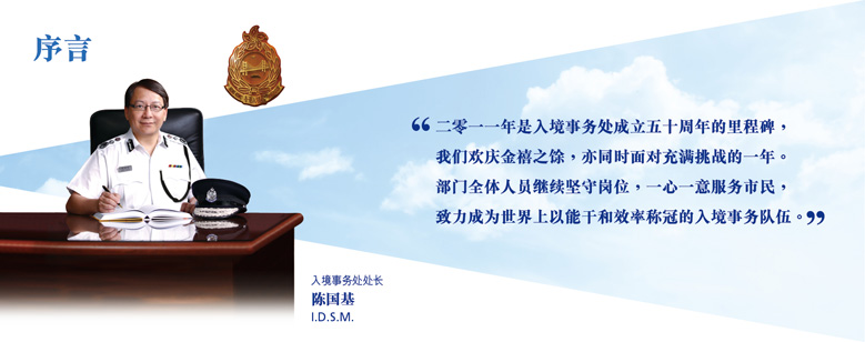 随着全球政治及经济环境的转变,以及公众对政府服务的要求不断提高,入境处未来的工作将会更为繁重。作为一支市民信赖的纪律队伍,透过全体人员共同努力,发挥专业团队精神,必定能够克服各项严峻的挑战,继续为市民大众提供最优质的服务,为香港的繁荣稳定作出贡献。