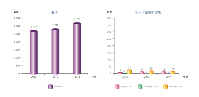 投诉检讨工作小组对二零一二年至二零一四年的投诉个案的复核结果